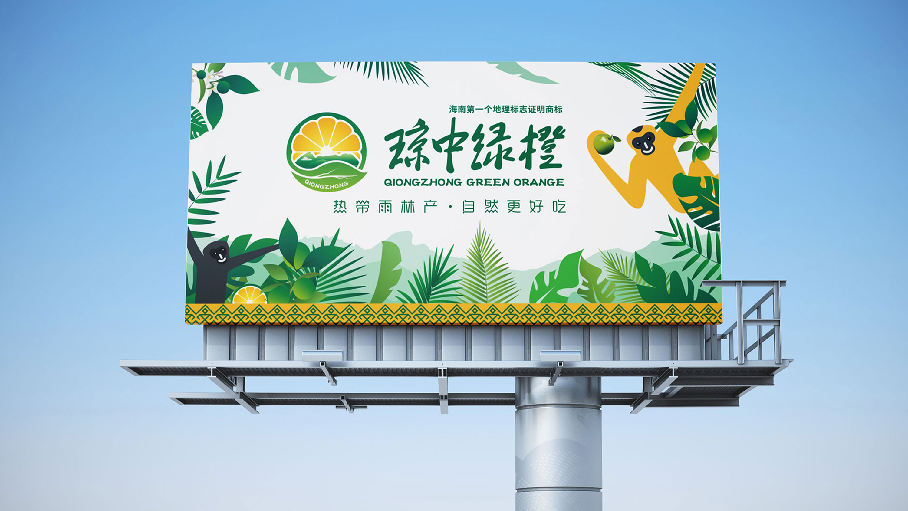 整體的品牌以“將熱帶雨林精華打包”為思路,以“Q” 和切開的綠橙為外形,將瓊中的熱帶雨林山水人文擁抱在其中。整體圓潤(rùn)大氣,成為瓊中綠橙最為重要的符號(hào)載體。全新包裝設(shè)計(jì)則以海南“國(guó)寶”-國(guó)家一級(jí)保護(hù)動(dòng)物海南長(zhǎng)臂猿、熱帶雨林植物元素,以二次元國(guó)潮設(shè)計(jì)風(fēng)格,再現(xiàn)瓊中綠橙所處的海南熱帶雨林國(guó)家公園的大生態(tài)環(huán)境。